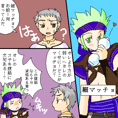 細マッチョごっこなリウと団長の漫画は字が潰れちゃってるので